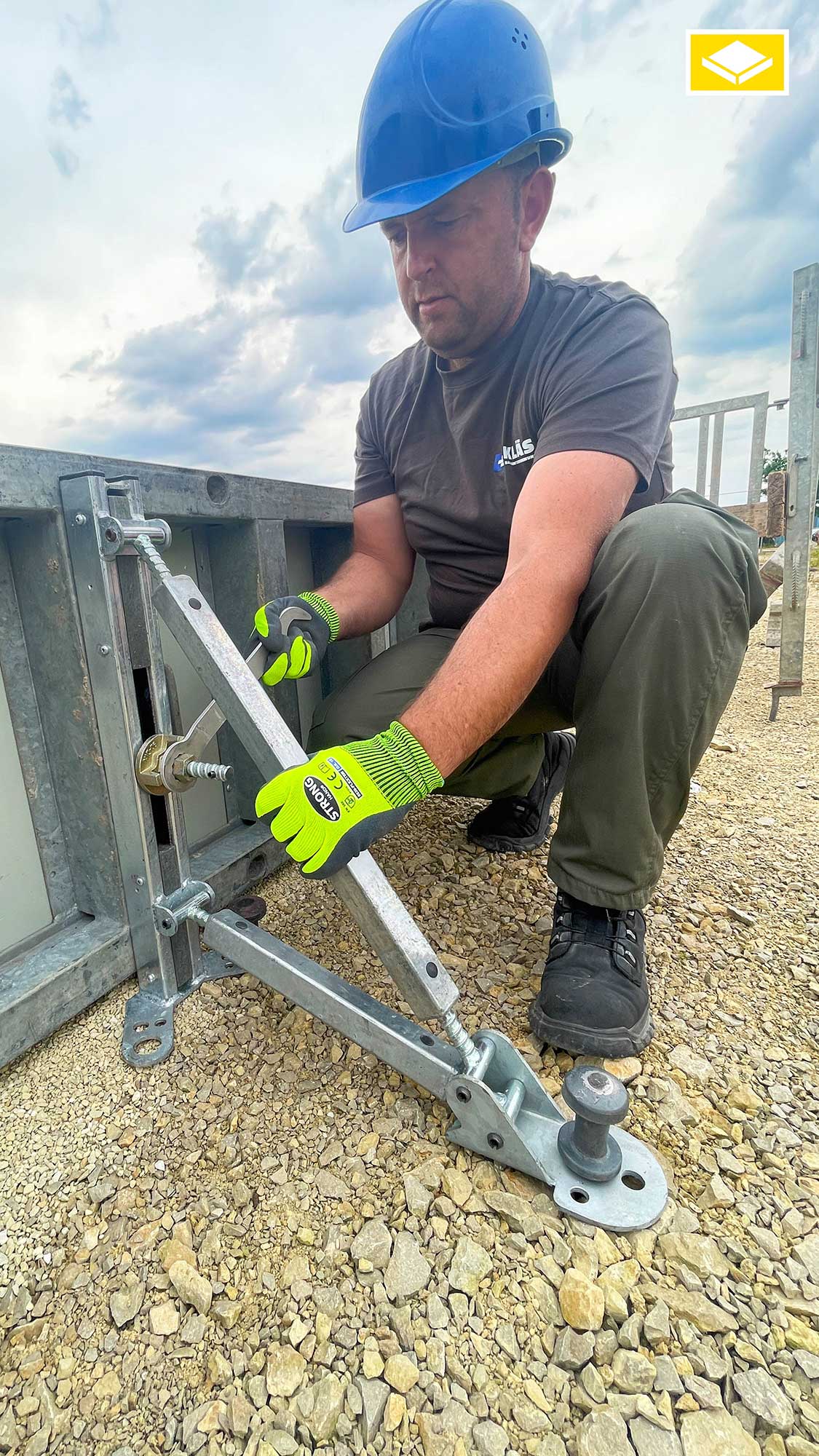 Statt mühsam mit Kanthölzern oder Brettern zu arbeiten, sorgt der SEKI BOCK für eine sichere und schnelle Abstützung, selbst bei unebenem Untergrund oder Höhenversätzen.