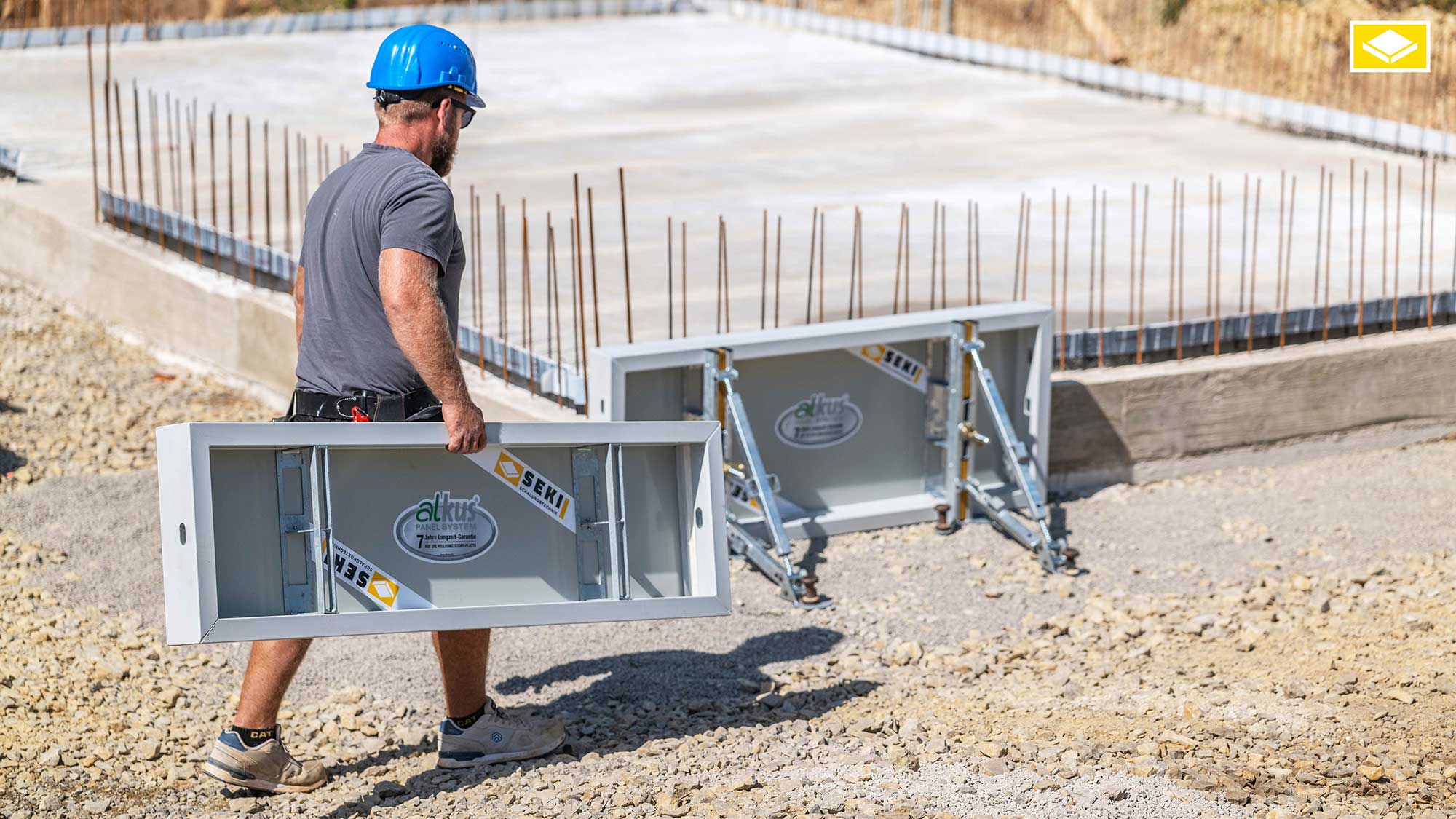 Erleben Sie den SEKI BOCK im praktischen Einsatz auf der Baustelle. Ob beim Einschalen von Bodenplatten, Fundamenten, Höhenversätzen in Bodenplatten und Decken, sowie für Überzüge und Attikas. Der SEKI BOCK zeigt, wie einfach, stabil und zeitsparend moderne heute Schalungstechnik sein kann.
